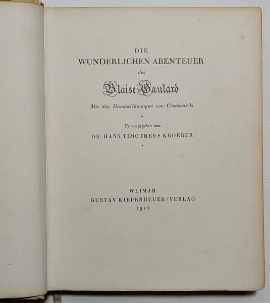 Die wunderlichen Abenteuer des Blaise Gaulard Mit den Handzeichnungen von Chodowiecki 1915