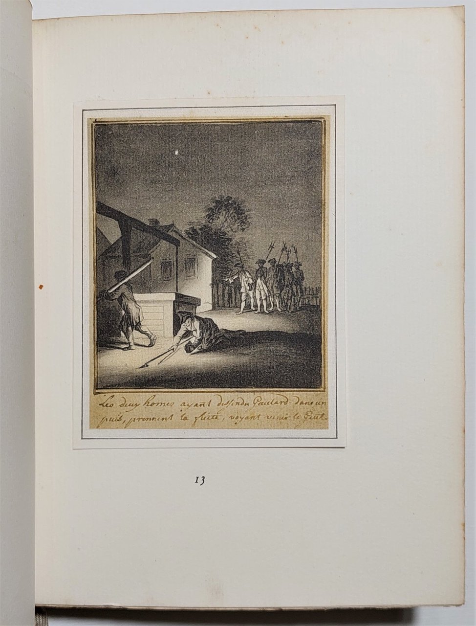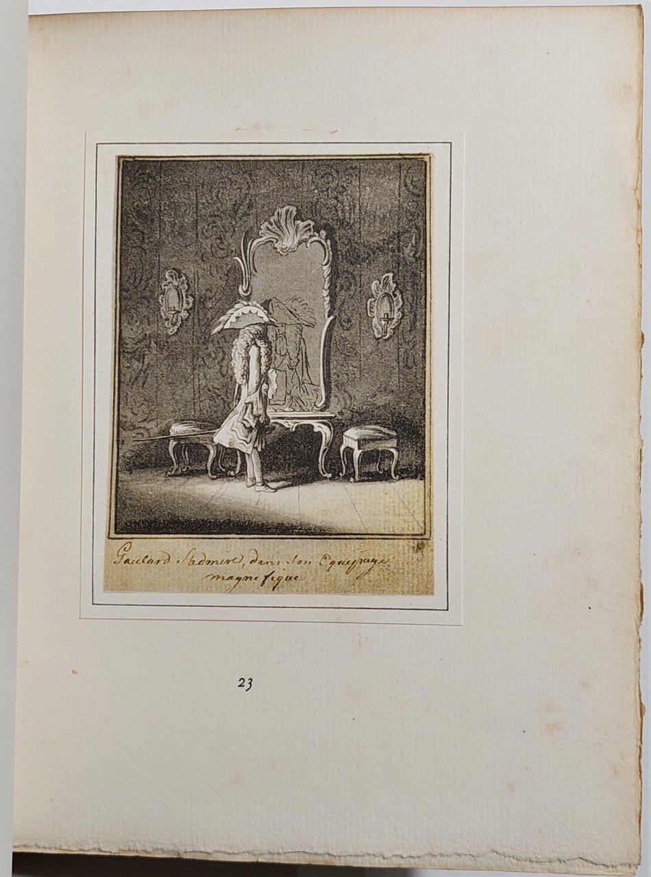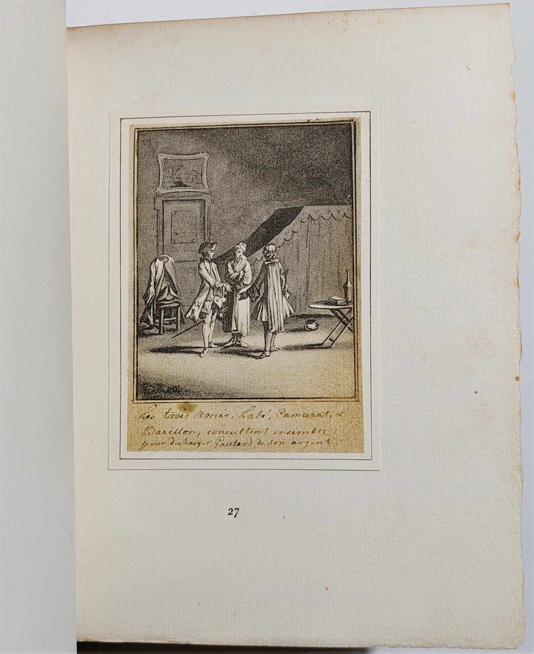 Due fogli bianchi pi˘ frontespizio pi˘ 43 fogli con collo tipi in facsimile montati al centro del foglio disegni a mano di Chodowiecki (1752) leggermente tinti di seppia.