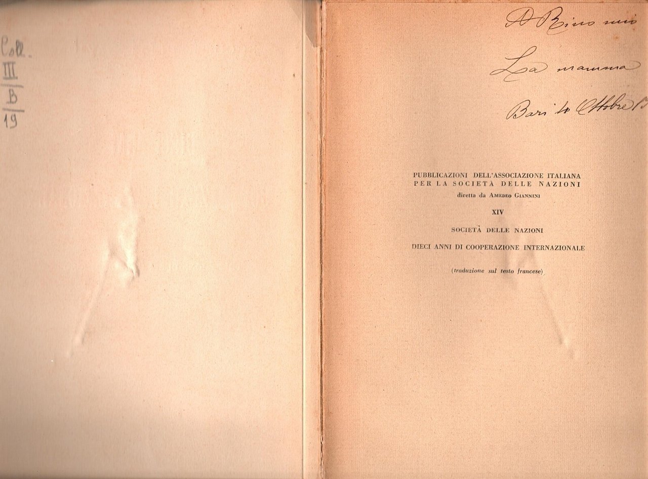 DIECI ANNI DI COOPERAZIONE INTERNAZIONALE, società delle nazioni.