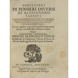 Dieci libri di pensieri diversi ne' quali per via di quisiti con nuovi fondamenti, e ragioni si trattano le più curiose materie naturali, morali, civili, poetiche, istoriche, e d'altre facoltà, che soglian venire in discorso fra Cavalieri, e Professori di Lettere