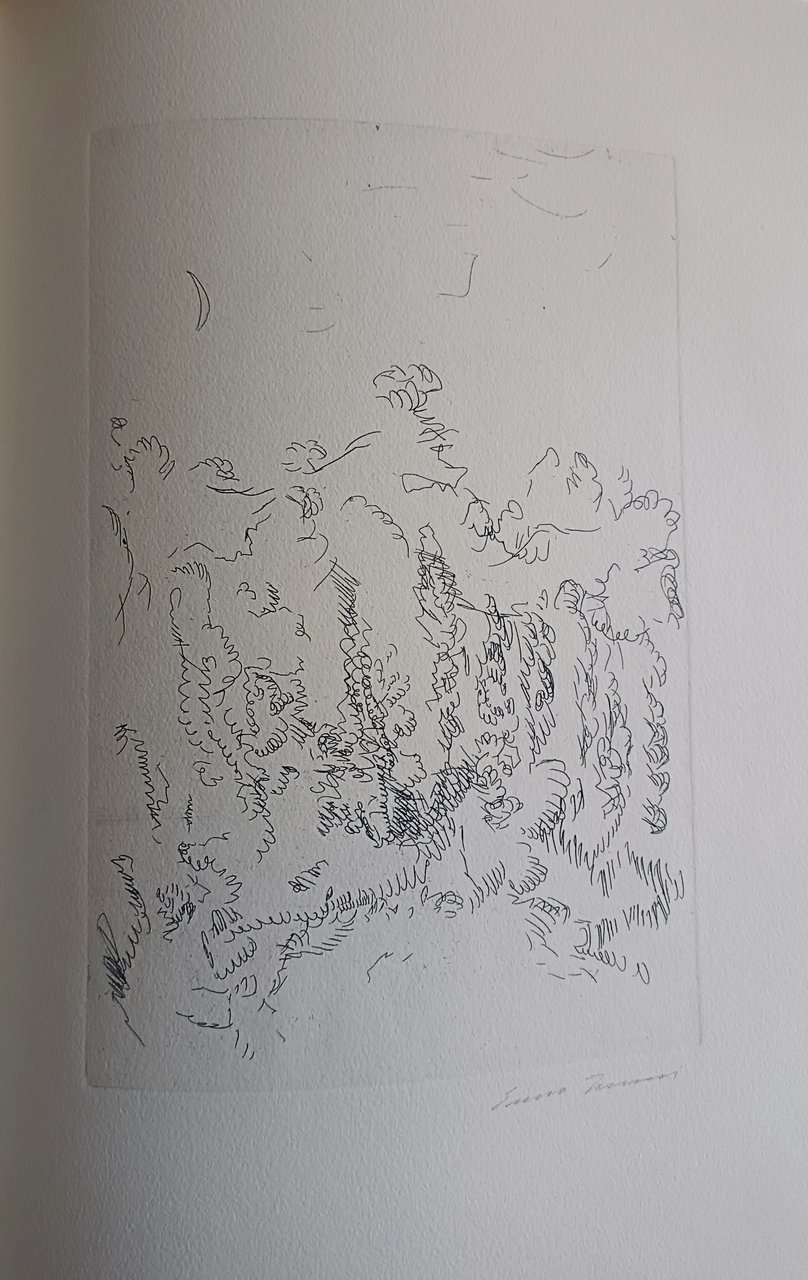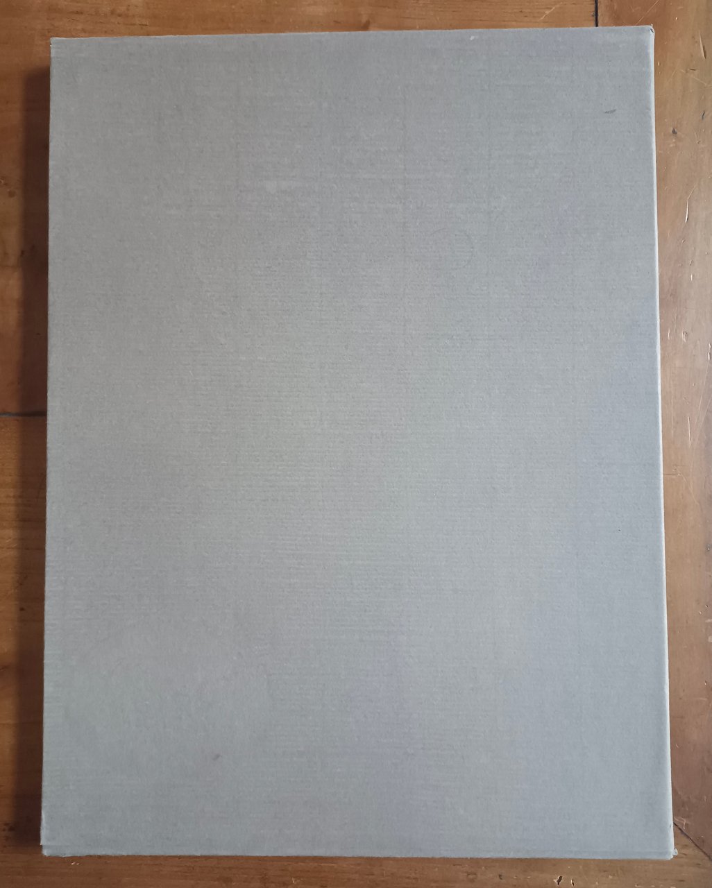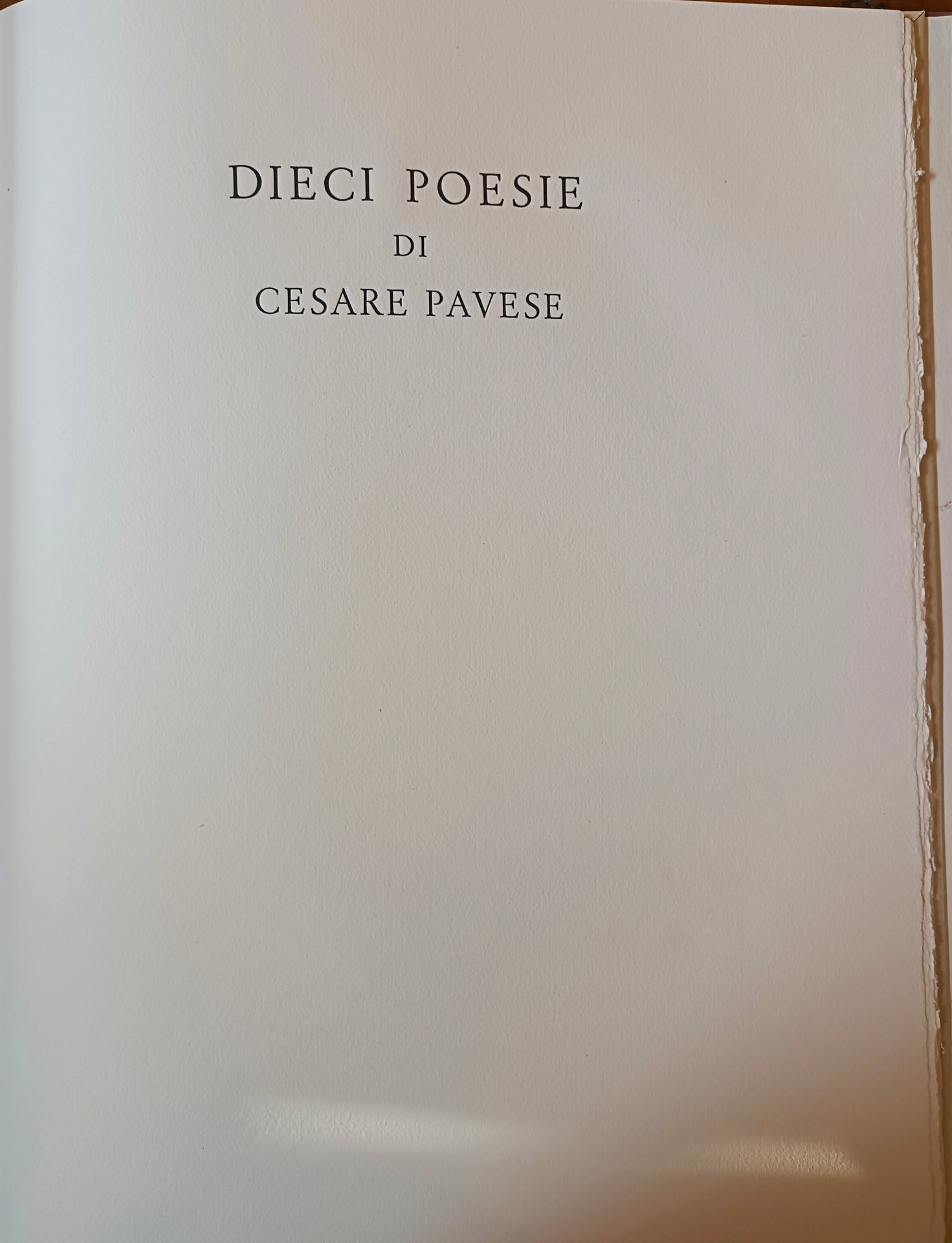 In Folio, mm 370×280, 27 pp, con due acqueforti firmate a matita da Ernesto Treccani. Tiratura di 150 esemplari, stampata a mano su carta a tino di Fabriano da Franco Riva. Brossura con pergamino protettivo, astuccio e custodia marroni. Esemplare n 28.Si ringrazia Dario Palma per il profilo di Franco Riva che suggeriamo di leggere sul suo sito.