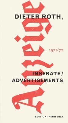 During the 1970s, Dieter Roth published a series of ads twice-weekly in a Swiss newspaper called the <I>Luzerner Stadtanzeiger</I>-ads which consisted of such aphorisms as "A good beginning is an evil end," "A tear is as evil as a good word" and "Two tears are better than five stones." This is the first complete publication of Roth's ads, previously only published as artist's books. — Testi: Wien Barbara. F.to: 11,5x20; pagg. 280; BN; rileg. brossura. Editore: Edizioni Periferia, Luzern, 2010.