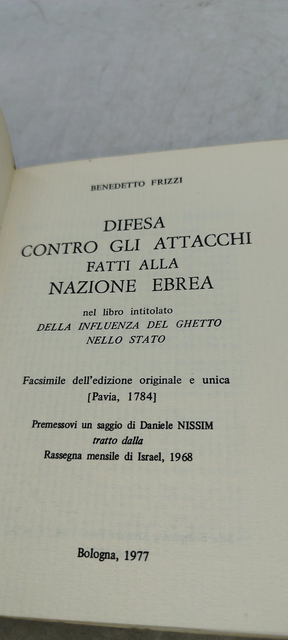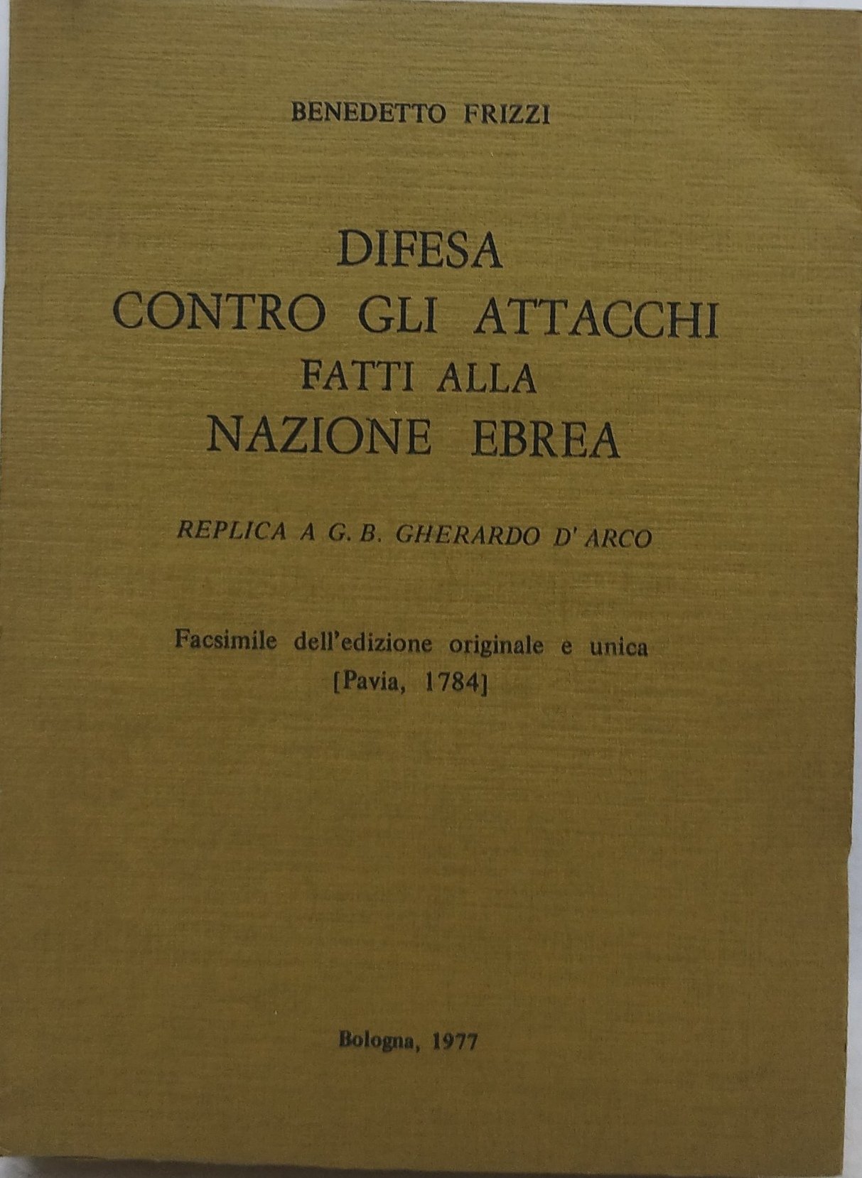 benedetto frizzi difesa contro gli attacchi fatti alla nazione ebrea. , 1977 italiano, 189 °°