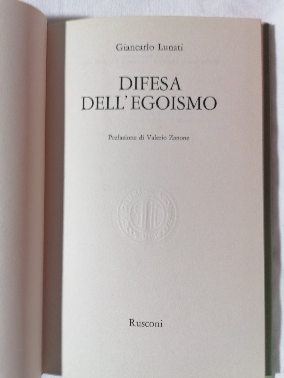 Difesa dell'Egoismo Libro Giancarlo Lunati Rusconi copertina rigida 1^ edizione