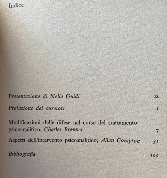 Contiene: Modificazioni delle difese nel corso del trattamento di Charles Brenner. Aspetti dell'intervento psicoanalitico di Allan Compton