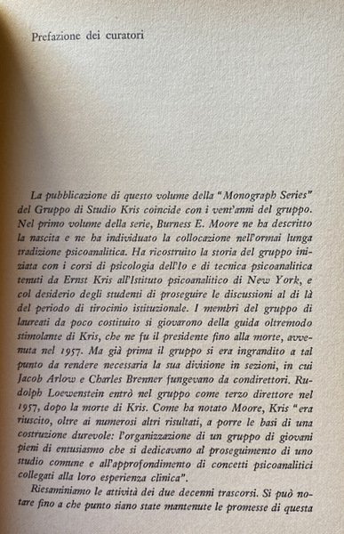 Soggetti: Psicanalisi, Psicologia, Saggistica, Teorie psicoanalitiche, Relazioni, Lezioni, Seminari, Inconscio, Metodo, Casi clinici, Clinica, Ricerca, Gruppi di Studio, Tecnica psicoanalitica, Conflitto psichico, Relazione paziente-analista, Transfert, Comunicazione verbale e non verbale, Metodi, Analisi, Psicoterapia, Sedute, Sedute, Interpretazione dei sogni, Empatia, Difesa, Personalità, Comportamento, Disturbi psichici, Metodi, Traslazione, Sublimazione, Prova, Scienza, Identificazione, Ricostruzione, Rievocazione, Rimozione, Negazione, Interpretazione, Identità, Pensiero, Super-Io, Narcisismo, Aggressività, Depressione, Comprensione, Nevrosi, Disturbi psichici, Malattia mentale, Sessualità, Test, Approccio terapeutico, Ruoli, Adulti, Libere associazioni, Traumi, Rimozione, Problemi, Risposte, Repressione, Frustrazione, Gratificazione, Successo, Esperienze, Meccanismo, Osservazione, Reazioni, Fantasie, Sessualità, Comprensione, Ascolto, Resistenza, Loewenstein, Bibliografia, Libri Vintage Fuori catalogo online, Libri rari, Consultazione, Riferimento, Difese, Hartmann, Rapaport, Gitelson, Eissler, Freud, Kris, Regressione, Oscar Sachs, Vienna, Zuiderzee, Stati Uniti d'America, Scuole, Obiettivi, Es, Waelder, De Saussure, Linguaggio, Fenichel, Hoffer, Joseph Weiss, Differenze di genere, Pazienti, Panel, Tatto, Risposte, Conclusioni, Memoria, Dora, Psychoanalysis, Psychology, Non-fiction, Psychoanalytic Theories, Reports, Lectures, Seminars, Unconscious, Method, Clinical Cases, Clinic, Research, Study Groups, Psychoanalytic Technique, Psychic conflict, Patient-analyst relationship, Verbal and non-verbal communication, Methods, Analysis, Psychotherapy, Sessions, Sessions, Dream interpretation, Empathy, Defense, Personality, Behavior, Neurosis, Psychic disorders, Methods, Translation, Sublimation, Test, Science, Identification, Reconstruction, Re-enactment, Removal, Denial, Interpretation, Identity, Thought, Superego, Narcissism, Aggression, Depression, Understanding, Psychic disorders, Mental illness, Sexuality, Therapeutic approach, Roles, Adults, Free association, Trauma, Removal, Problems, Responses, Repression, Frustration, Gratification, Success, Experiences, Mechanism, Observation, Reactions, Fantasies, Sexuality, Understanding, Listening, Resistance, Bibliography, Out of print books, Rare books, Consultation Ne, Reference, Defenses, Regression, United States, Schools, Goals, Language, Gender differences, Patients, Touch, Answers, Conclusions, Memory