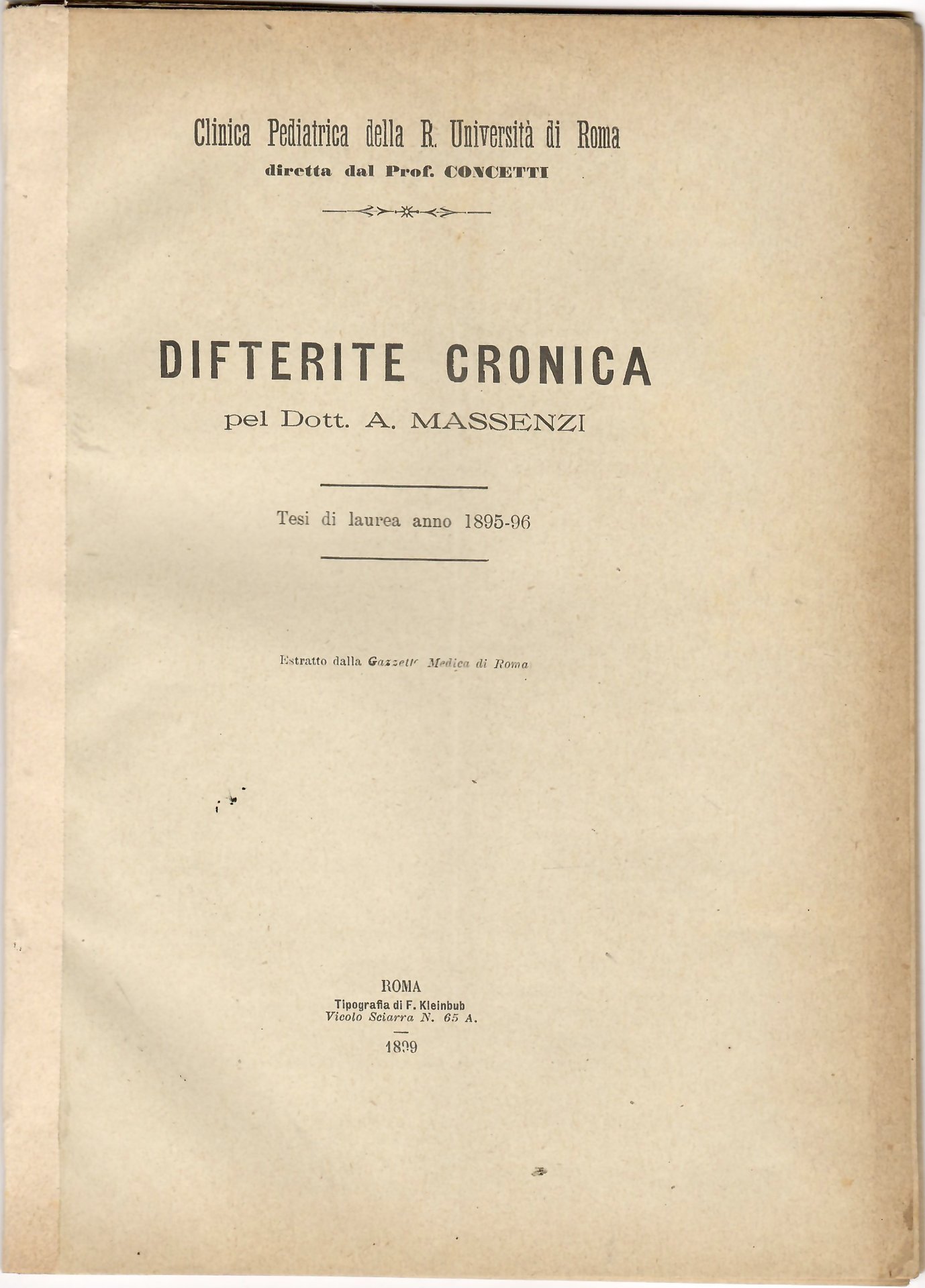 Difterite Cronica. Tesi Di Laurea Anno 1895-96