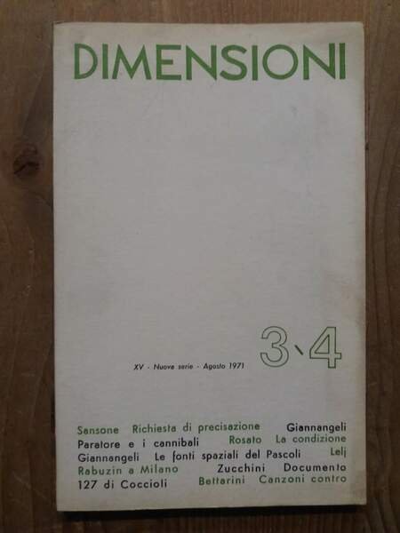 Dimensioni Bimestrale di cultura - Nuova serie N.3-4 Agosto 1971