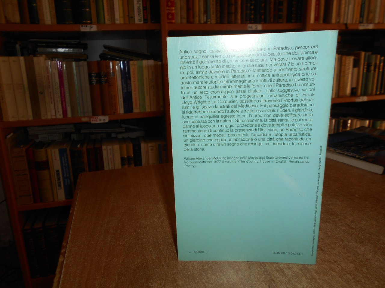 WILLIAM ALEXANDER McCLUNG. Bologna, Il Mulino, 1987. DIMORE CELESTI. L' architettura del Paradiso. In-8°, br. 190 pp. con 62 illustrazioni n.t. Come nuovo. Neg. esot. mob. 102