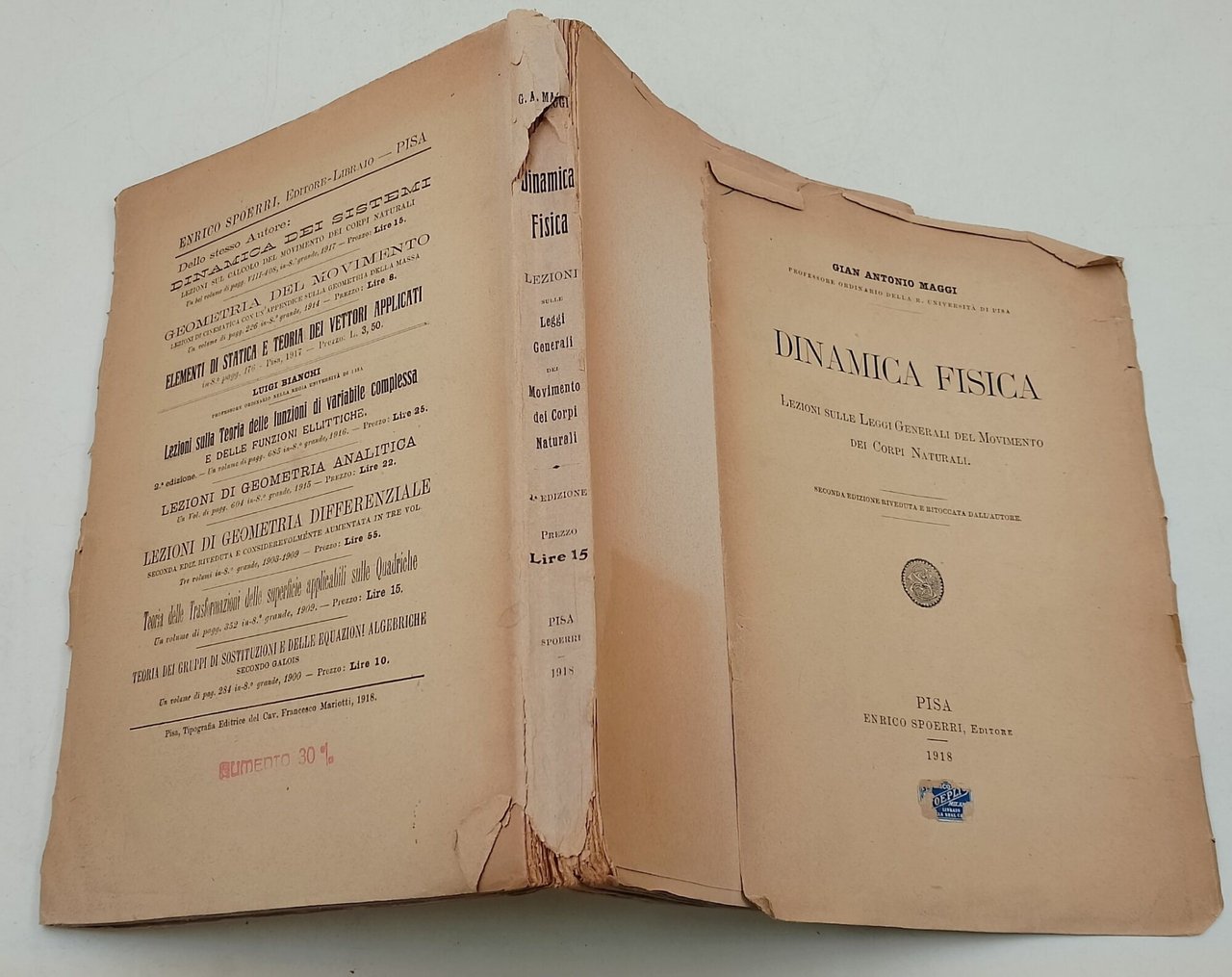 In 8', br. ed., pp. VII, 235, seconda edizione riveduta e ritoccata dall'Autore; strappi al dorso, piatto ant. staccato e arricciato al marine sup.,legatura stanca, , bruniture ai margini, segni del tempo. ***Due to bureaucratic reasons, books dated over 70 years old cannot be immediately exported, please contact us before placing the order.***