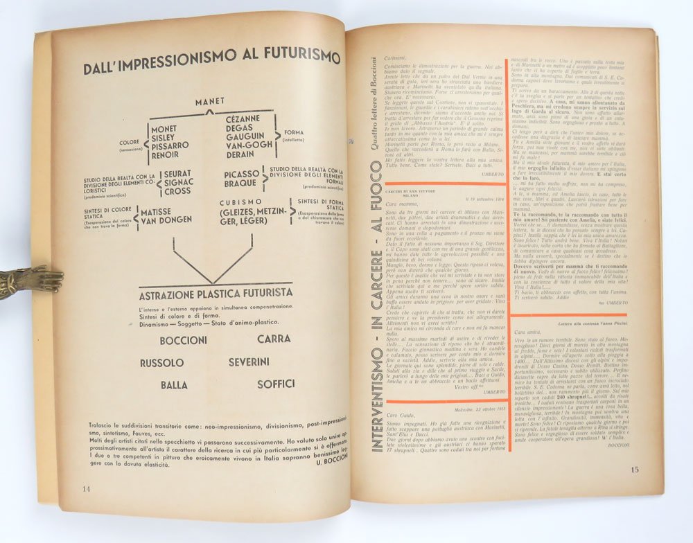 - 1 c. arancione, 1 c. normale n.n., pp. 20 [1] con una c. patinata f.t. con fotoritr. di Boccioni, 7 cc. patinate f.t. con fotoripr. di opere di Boccioni.