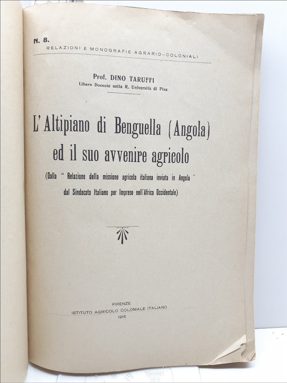 Dino Taruffi L'altopiano di Benguella Angola e il suo avvenire agricolo Istituto Agrario coloniale italiano 1916