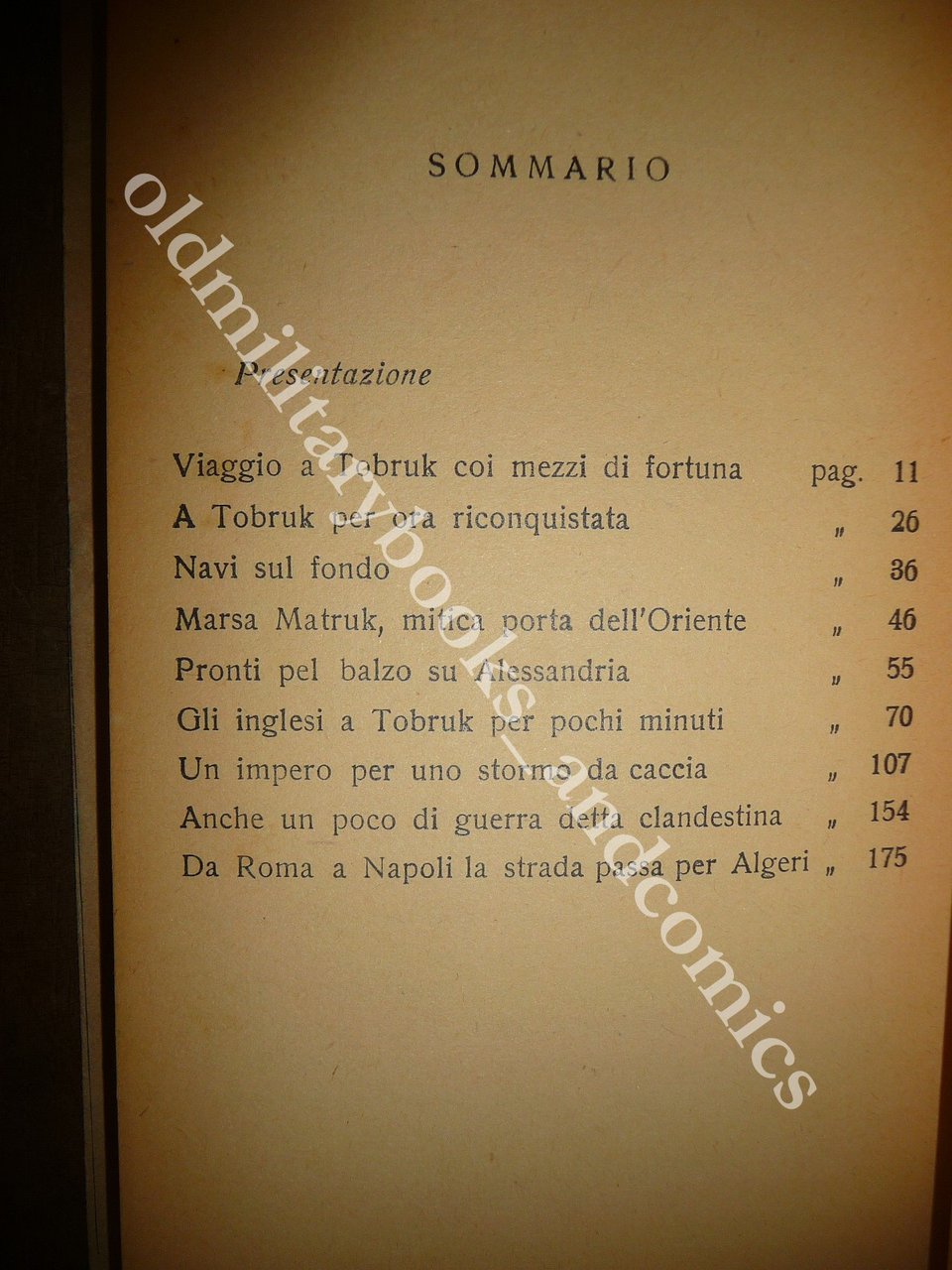 I fatti narrati concernono il periodo dal 1942 al 1944, e in particolar modo le vicende dell'Autore in Africa Settentrionale, in cui tornò nell'estate del '42 non solo per rivedere nel porto di Bengasi il relitto del suo Borea, ma soprattutto per stabilire una centrale operativa del SIS a Tobruk, riconquistata da poco dopo l'occupazione inglese, con questi scopi: - cercare documenti a terra - utilizzare sommozzatori per cercare documenti nei relitti nemici, come si fece col Mohawk - inviare informatori oltre le linee - installare una stazione R.T. per comunicazioni dirette con Roma - interrogare prigionieri nemici. Oltre alla descrizione, sommamente interessante, delle predette attività, Cippico fornisce un quadro realistico quanto scanzonato di quel periodo, in cui alla cronica deficienza di organizzazione e materiale faceva da contraltare l'abnegazione di chi laggiù combatteva fino all'ultimo. Le ultime pagine sono infine dedicate alle vicende di Cippico a Roma nel fronte clandestino (settembre '43 - febbraio '44).