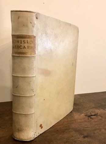 4to (cm. 20,5), 4 cc.nn., 324 cc. Grande marca tipografica al frontespizio (Sibilla seduta di profilo tiene con il braccio sinistro un libro e sulle ginocchia un altro). Legatura ‘700 in pergamena rigida con nervi e titolo oro su tassello dipinto al ds. (alcune macchie al piatto posteriore). Tagli azzurri. Esemplare in ottimo stato di conservazione. Prima edizione della traduzione in volgare. Cicognara (3702): ‘. edizione impressa con buoni caratteri corsivi assai nitidamente’; Gamba, 2580; Rossetti, 2288; Adams, D-636.