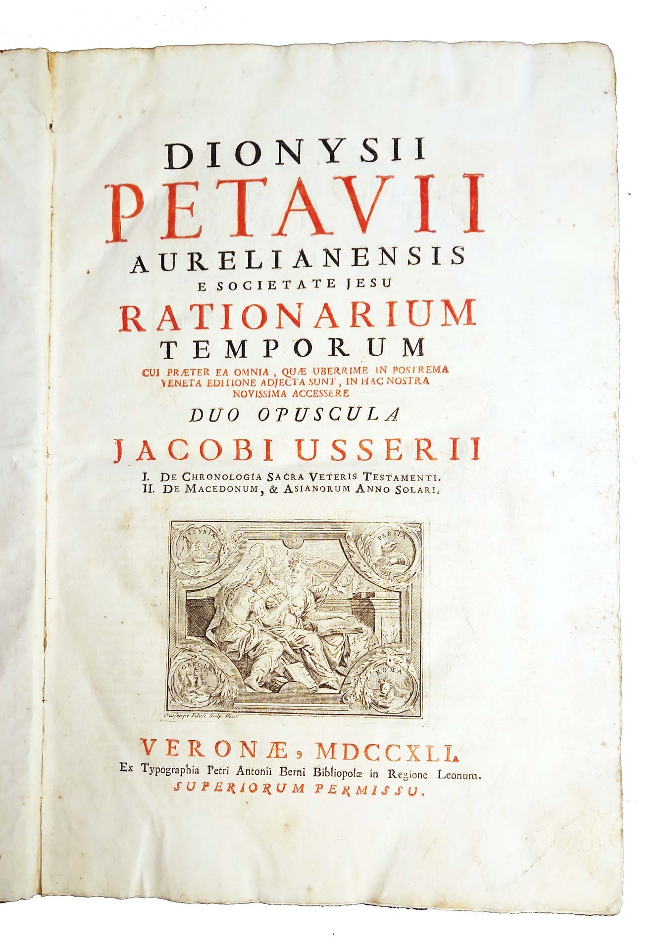 Dionysii Petavii […] Rationarium temporum cui praeter ea omnia, quae uberrime in postrema Veneta editione adjecta sunt, in hac nostra novissima accessere duo opuscula Jacobi Usserii 1. De chronologia sacra Veteris Testamenti. 2. De Macedonum, & Asianorum anno solari. Editio novissima.