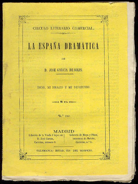 3ª Ed.- Salamanca: Círculo Literario Comercial (Establecimiento Tipográfico del Hospicio), 1867.- 82 p., [1 h.]; 4º menor (21 cm.).- (Círculo Literario Comercial. La España Dramática. 210).* TEATRO ESPAÑOL DE LOS SIGLOS XIX-XXI