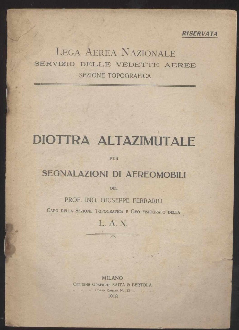 Diottra altazimutale per segnalazioni di aereomobili del Prof. Ing. Giuseppe Ferrario