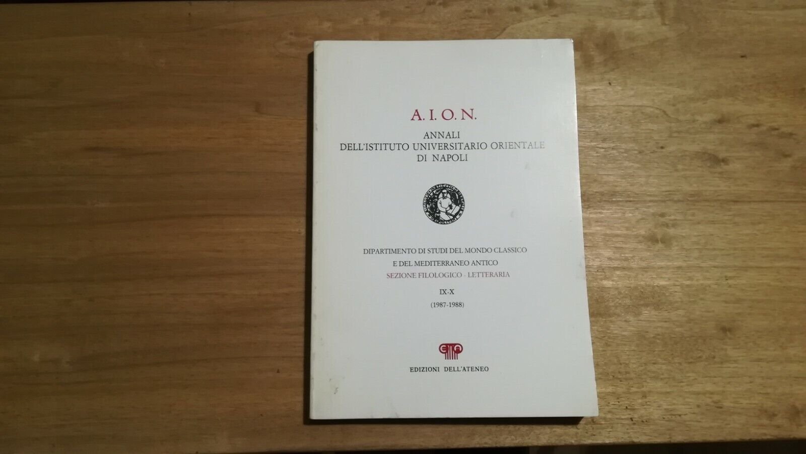 Dipartimento di studi del mondo classico e del mediterraneo antico. Sezione filologico - letteraria. IX-X 1987-88 A.I.O.N.