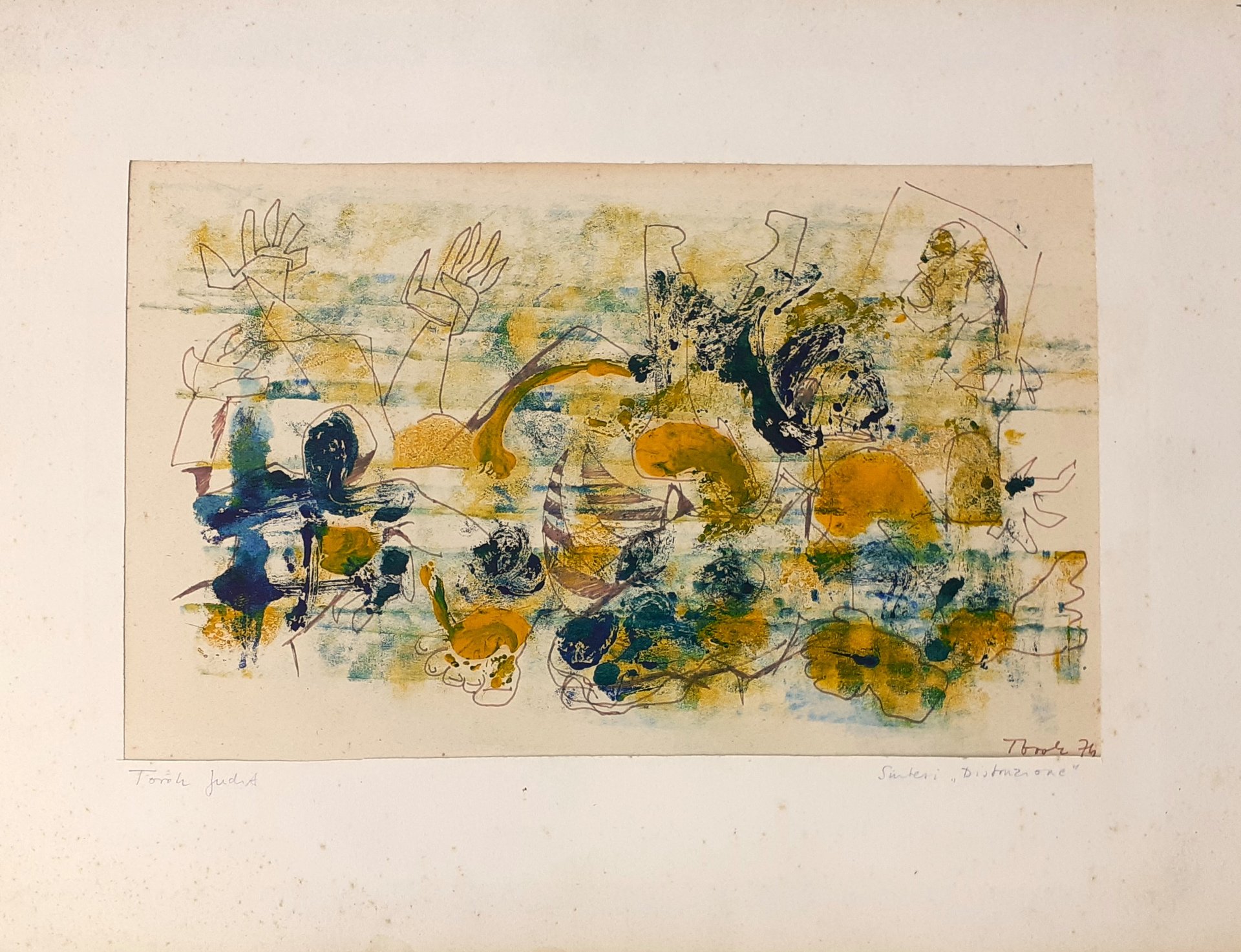 Dipinto tecnica mistra di Judit Torok 1974 Sintesi di Distruzione - E11744