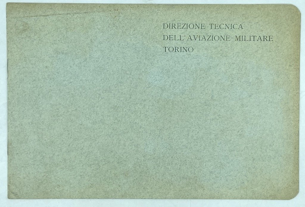 Opuscolo in brossura editoriale a stampa, formato album cm 16.5 x 24.5, pp (8) illustrate in nero, in carta patinata. Rara pubblicazione della Direzione Tecnica dell’Aviazione Militare di Torino per l’identificazione dei velivoli in servizio, con profilo laterale e vedute dal basso in pianta e ortogonale di ciascun apparecchio. Illustrati alcuni biplani dei primi anni ’10, utilizzati dal Corpo Aeronautico Militare durante i primo conflitto mondiale: i Caudron G.3 e G.4 (prodotti su licenza in Italia dalla A.E.R. di Orbassano), il Maurice Farman Shorthorn (MF 11/1914, prodotto su licenza da FIAT), il Nieuport 10 (o variante simile), l'Aviatik B.I, il Voisin III, il Caproni Ca.1 (Ca.32). La DTAM, diretta dal Osvaldo Ricaldone, era un reparto tecnico affiancato al Battaglione Aviatori di Torino con lo scopo di collaudare i velivoli e valutare le commesse aeronautiche. Non comune, un solo esemplare in ICCU.