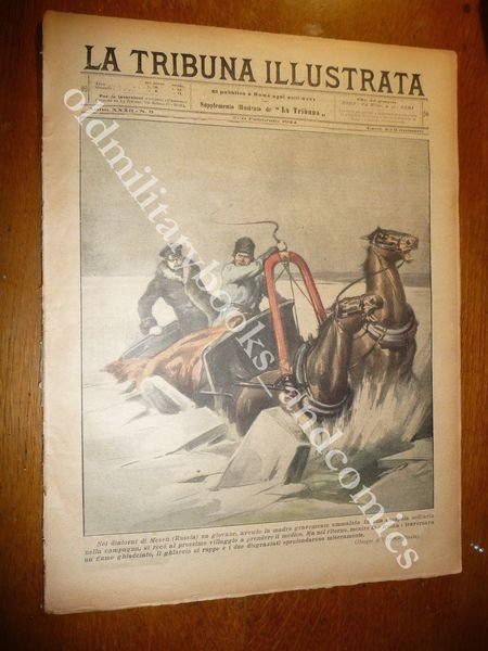 DESCRIZIONE: La Tribuna Illustata n. 6 del 3 febbraio 1924 COPERTINA: "Due russi sprofondano con la slitta nel ghiaccio che si rompe" RETRO: "Un aviatore della marina degli Stati Uniti, precipitato con il proprio apparecchio nelle acque di Capo Hatteras, è stato tratto in salvo per mezzo di una scala di corda lanciatagli dal piccolo dirigibile D-3" CONDIZIONI DELL'OGGETTO: Buone/Ottime, rivista senza sovracc. azzurrina, e senza spillette, con strappetti. PESO/WEIGHT: 47 g without package