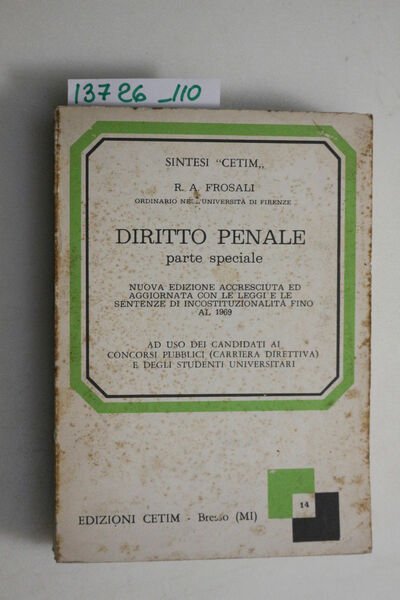 Diritto penale, parte speciale nuova edizione accresciuta ed aggiornata con le leggi e le sentenze di incostituzionalità fino al 31 luglio 1969