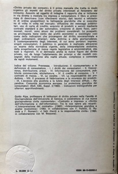 Alpa amministrativo analisi applicazione artt associazioni attività Bessone carte di credito caso categoria clausole di esonero clausole vessatorie codice civile collettività commerciale commercio Commissione common law compratore Comunità economica europea comunitaria concorrenza sleale condizioni generali Consiglio d'Europa Consumer consumerism contenuto contratti standard vendite contrattuale controllo credito consumo criteri determinazione diritto soggettivo disciplina distribuzione economica fabbricante fenomeno fornitore funzione garanzia generali giudiziaria giuridica giurisprudenza imprese inadempimento informazioni interessi diffusi impresa legge legislatore materia mercato messaggi pubblicitari modello negoziale normativa norme opera ordine organismi organizzazioni prassi prezzi principio procedure processuali prodotti difettosi progetto protezione pubblico rapporto regole responsabilità produttore responsabilità oggettiva riguardo rischio settore singoli sistema sociale strumenti tecniche tutela utenti venditore