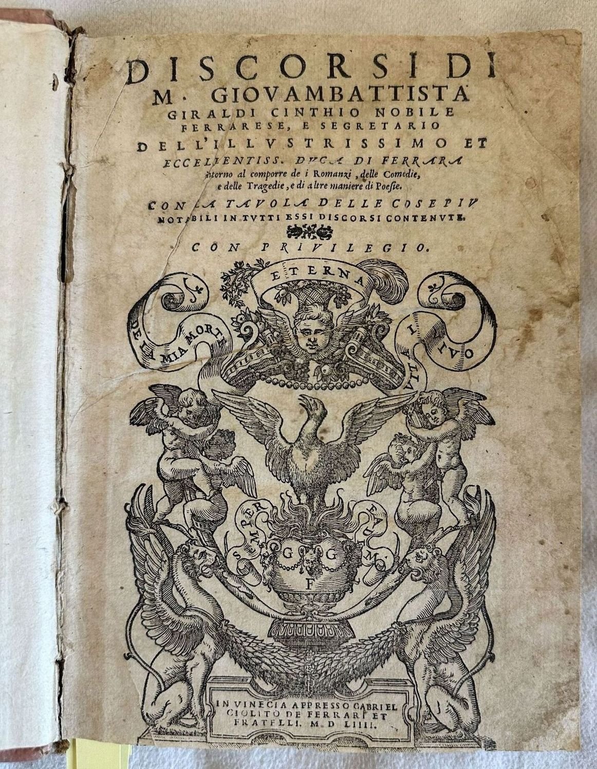 DISCORSI DI M. GIOVAMBATTISTA GIRALDI CINTHIO NOBILE FERRARESE E SEGRETARIO DELL'ILLUSTRISSIMO ET ECCELLENTISS. DUCA DI FERRARA