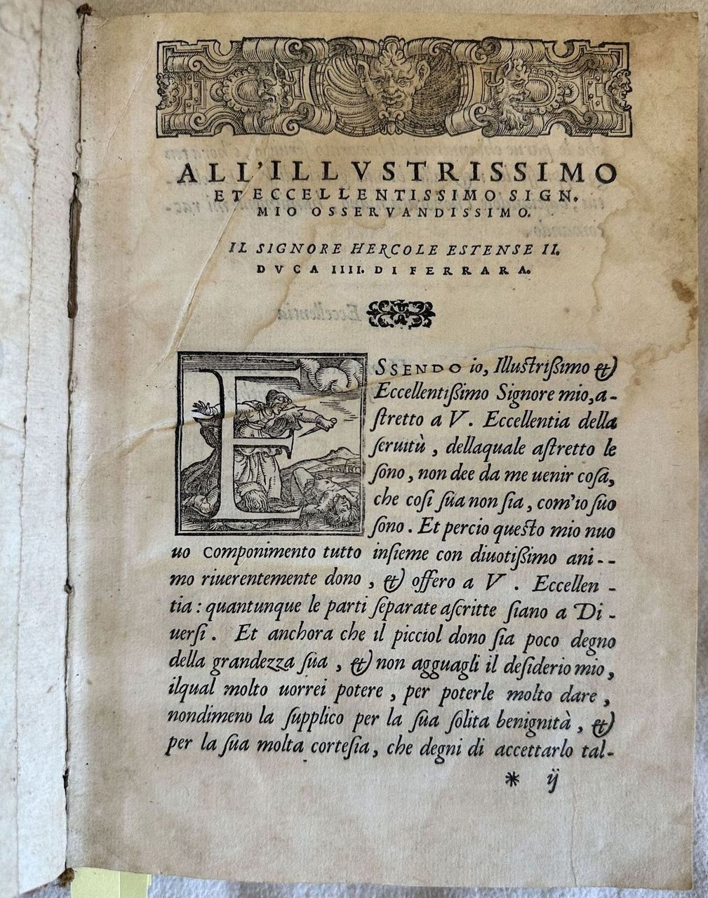 Prima edizione del 1554 della celebre opera del letterato poeta e drammaturgo Giovan Battista Giraldi Cinzio (Ferrara 1504-Ferrara 1573), considerato come uno dei maggiori esponenti della cultura ferrarese del Rinascimento. Giraldi scrisse numerose tragedie una delle quali utilizzata da Shakespeare come base per il suo "Otello". Professore di retorica a Ferrara e Torino è molto stimato come teorico del teatro e precursore di nuovi generi teatrali. I suoi "Discorsi" sono un'opera teorica sulla composizione dei romanzi, commedie e tragedie e diedero un notevole sviluppo sulla formazione degli autori successivi. "Prima edizione dell'importante contributo dato dal Giraldi alla teoria letteraria e alla codificazione di nuovi e vecchi generi (tragedia, tragicommedia, satira, egloga, commedia, romanzo, poema eroico), di cui egli stesso nel corso della sua carriera diede vari esempi (cfr. R. Bruscagli, G.B. Giraldi: comico, satirico, tragico, in "Il teatro italiano del Rinascimento", Milano, 1980, pp. 261 - 283). Cornice figurata al frontespizio: Fenice su un braciere acceso. Antiche note manoscritte nel testo. In buone condizioni. Copertina in mezza tela con titolo in oro su tassello al dorso in buone condizioni generali con lievi usure a margini e dorso. Legatura in buone condizioni. All'interno le pagine si presentano in ottime condizioni con rare fioriture. Rinforzo al margine di piegatura del frontespizio e mancanza al margine inferiore dell'ultima carta senza perdita di testo. In 8. Dim. 20x14,5 cm. Pp. (8)+287+(29). First edition of 1554 of the famous work of the letterate poet and dramawriter Giovan Battista Giraldi Cinzio (Ferrara 1504-Ferrara 1573), considered as one of the most important exponents of Rinascimento period in Ferrara. Giraldi wrote different tragedies one of them used by Shakespeare as a base for his "Otello". Teacher of rhetorics in Ferrara and Torino is an estimeed theoric of theatre and creator of new theatre kinds. His "Discorsi" are a theorical work about the composition of novels, plays and tragedies and had an important contribution to the formation of authors . "Prima edizione dell'importante contributo dato dal Giraldi alla teoria letteraria e alla codificazione di nuovi e vecchi generi (tragedia, tragicommedia, satira, egloga, commedia, romanzo, poema eroico), di cui egli stesso nel corso della sua carriera diede vari esempi (cfr. R. Bruscagli, G.B. Giraldi: comico, satirico, tragico, in "Il teatro italiano del Rinascimento", Milano, 1980, pp. 261 - 283). Figurated frame in the title page. Ancient handwritten notes in the text. In good conditions Half cloth cover with gilted title and decorations in the spine in good general conditions lightly worn in the extremities. Binding in good conditions. Pages in very good conditions with occasional foxing. Reinforcement in the folding edge of title page and missing part in the foot edge of the last page with no loss of text. In 8. Dim. 20x14,5 cm. Pp. (8)+287+(29).