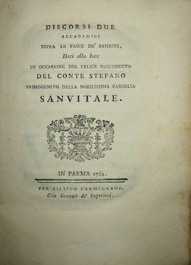 Discorsi due accademici sopra le fasce de’ bambini, dati alla luce in occasione del felice nascimento del Conte Stefano primogenito della nobile famiglia Sanvitale