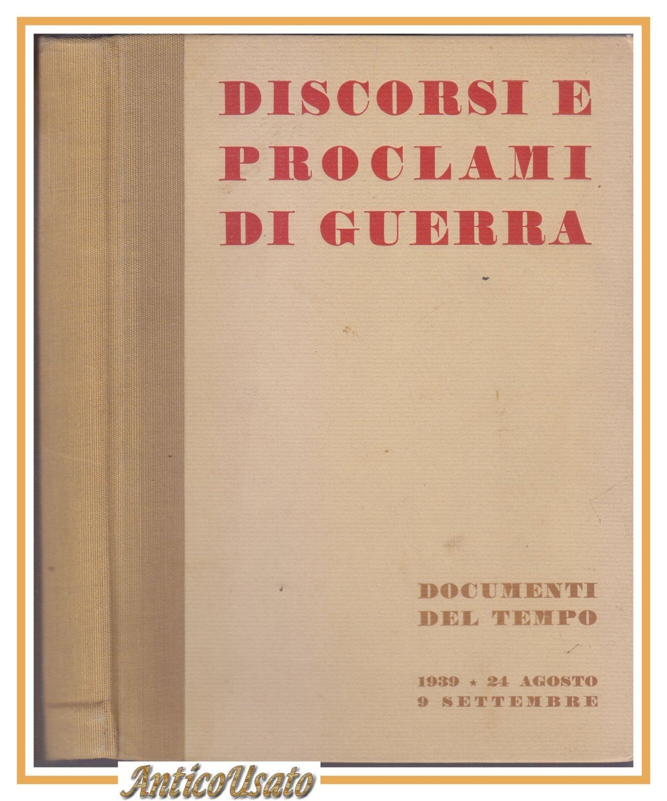 DISCORSI E PROCLAMI DI GUERRA DOCUMENTI DEL TEMPO Agosto Settembre 1939 libro