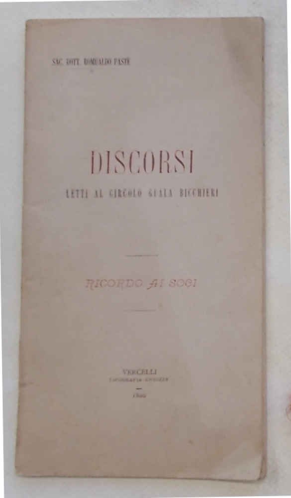 In 8° stretto (cm. 20 x 10,5); pagg. 62; con illustraz. f.t. e n.t.; leggera cartonatura originale VG. ** "Ricordo ai soci".