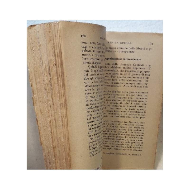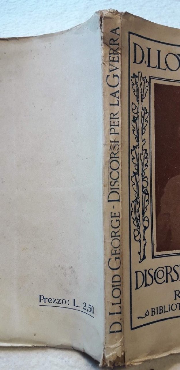In 8', br. ed. pp. 195, strappetti e piccole mancanze al dorso, segni d'uso e del tempo; conservato all'interno volumetto di 16 pp privo di cop., "La lotta per la liberta'"- discorsi del Primo Ministro della Gran Bretagna , on David Lloyd George e dell'ambasciatore degli Stati Uniti a Londra pronunziati il 12 aprile 1917 all'American Luncheon Club. ***Due to bureaucratic reasons, books dated over 70 years old cannot be immediately exported, please contact us before placing the order.***