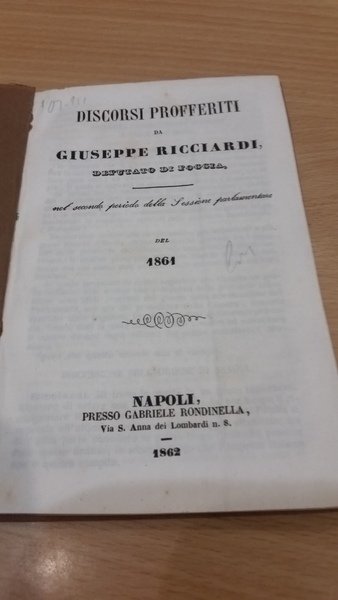 discorsi profferiti da giuseppe ricciardi deputato di foggia del 1861