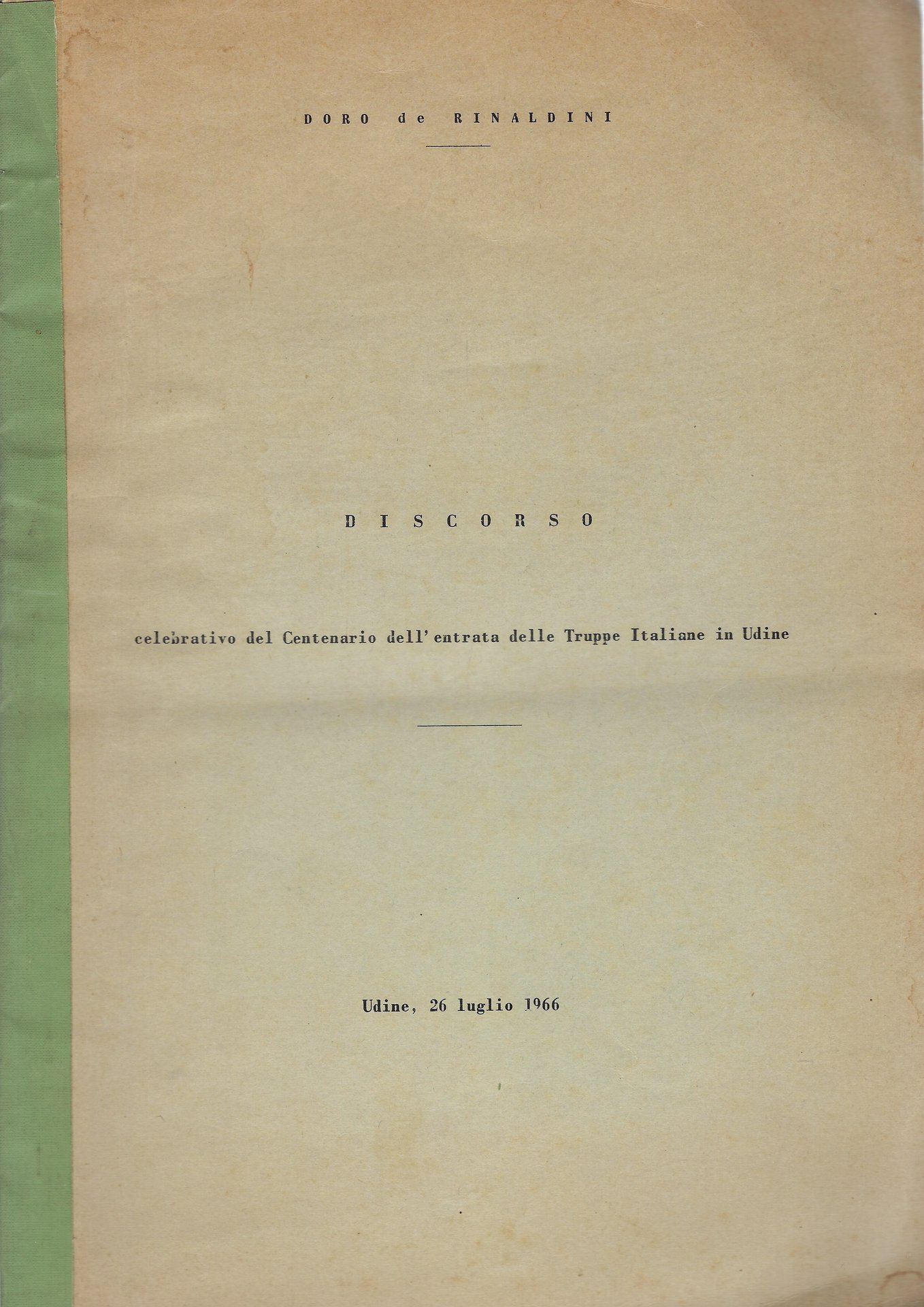 Discorso celebrativo del Centenario dell'entrata delle Truppe Italiane in Udine