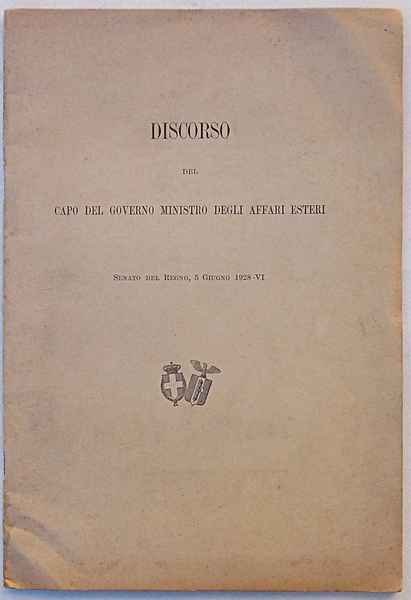 Discorso del Capo del Governo Ministro degli affari esteri. Senato del Regno, 5 giugno 1928 - VI.