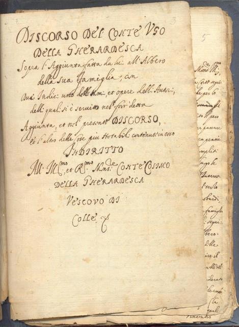 Discorso del Conte Ugo della Gherardesca sopra l’aggiunta fatta da lui all’albero della sua famiglia, con due indici uno…, et opere delli Autori, delle quali si è servito nel far… Aggiunta, et nel presente discorso, et l’altro delle cose più notabili contenute in esso… All’Ill.mo, et R.mo Mns. Il Conte Cosimo Della Gherardesca vescovo di Colle….