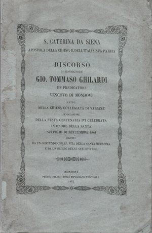 176 p. ; 24 cm. In copertina: “Discorso . letto nella chiesa colleggiata di Varazze in occasione della festa centenaria ivi celebrata in onore della Santa sui primi di settembre 1861.” Brossura coeva (ultima copertina e dorso rifatto). Timbro con numero (cancellato e riscritto). Buono. ****
