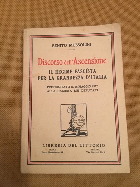 Discorso dell'ascensione. Il regime fascista per la grandezza d'Italia.Pronunciato il 26 maggio 1927 alla Camera dei deputati.