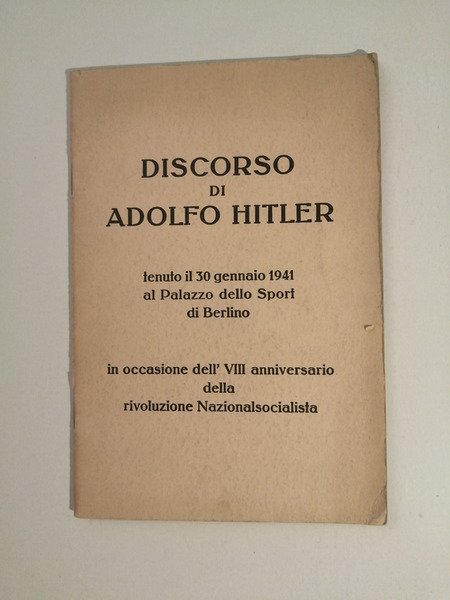 Discorso di Adolf Hitler tenuto il 30 gennaio 1941