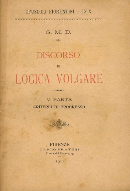 Discorso di logica volgare. Per G.M.D. [I parte. II parte: Elementi e momenti del pensiero. I limiti. IV parte, sommario. III parte: Ipotesi artistiche. V parte: criterio di progresso].