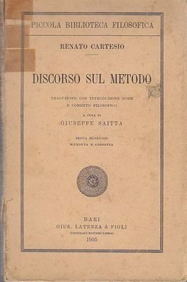 DISCORSO SUL METODO di Renato Cartesio Laterza, piccola biblioteca filosofica, 1935. 134 pagine. Copertina editoriale in brossura. Dimensioni: 12,5 x 20 cm. Stato di conservazione: buono (copertina sciupata