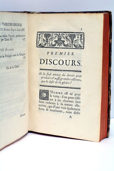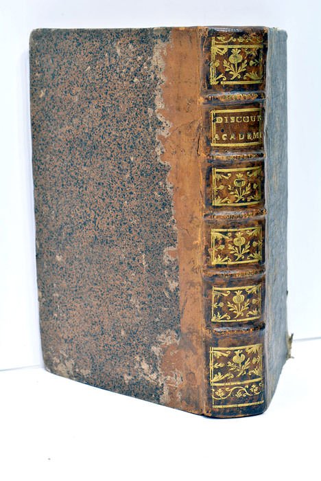 XL. 377 pages. 1 feuillet. (16,5 x 11 Cm). Demi veau, dos à nerfs orné. Reliure de l'époque. Plats frottés. Coins émoussés. Très bon état intèrieur. Edition collective des premiers textes de l'historien franc-comtois, membre de l'Académie Française, C.F.X. Millot (Ornans, 1726-Paris, 1785). Ce sont des écrits de philosophie, pédagogie, morale, etc. Très bon exemplaire.