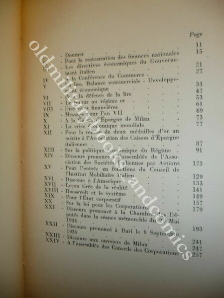 DISCOURS DE BENITO MUSSOLINI SUR LA POLITIQUE ÉCONOMIQUE ITALIENNE