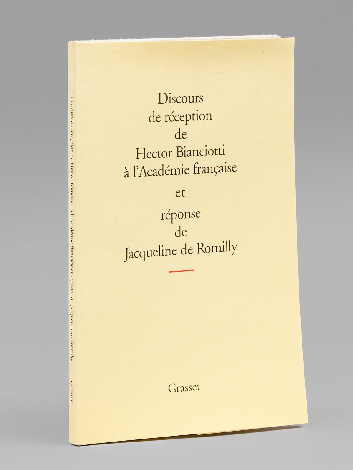 Discours de Réception de Hector Bianciotti à l'Académie Française et réponse de Jacqueline de Romilly [ Edition originale - Exemplaire numéro 1 dédicacé à Maurice Druon ] Suivi de l'allocution de Bertrand Poirot-Delpech pour la remise de l'épée et des Remerciements de Hector Bianciotti