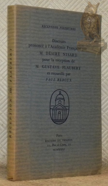 Discours prononcé à l'Académie Française par M. Désiré Nisard pour la réception de M. Gustave Flaubert et recueilli par Paul Reboux. Collection Réceptions Posthumes, n.° 1.