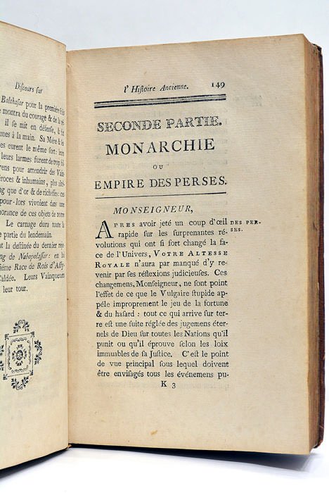 Discours sur l'Histoire Ancienne pour faciliter aux Jeunes Personnes de l'un et de l'autre Sexe l'intelligence des Auteurs anciens et modernes et pour former un Système général du Gouvernement des Peuples de l'Asie, de l'Afrique et de l'Europe. Dédié à S.A.E. L'Archiduc Ferdinand.