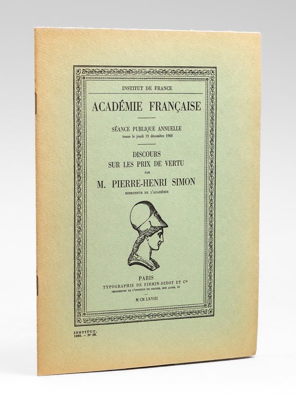 Discours sur les prix de vertu [ Livre dédicacé par Pierre-Henri Simon à Maurice Druon ] Séance publique annuelle tenue le jeudi 19 décembre 1968