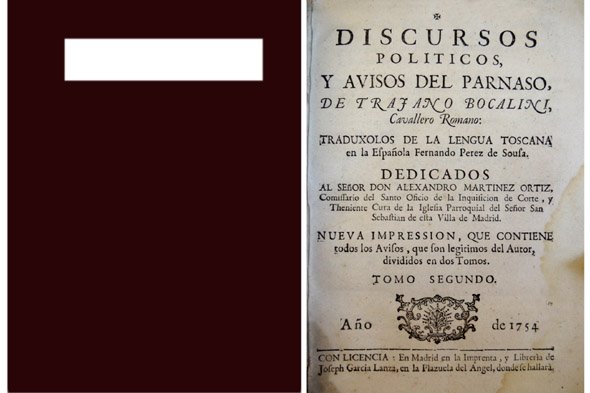 Discursos Políticos y Avisos del Parnaso. Traduxolos de la lengua Toscana en la Española Fernando Peres de Sousa. Tomo Segundo (de dos).