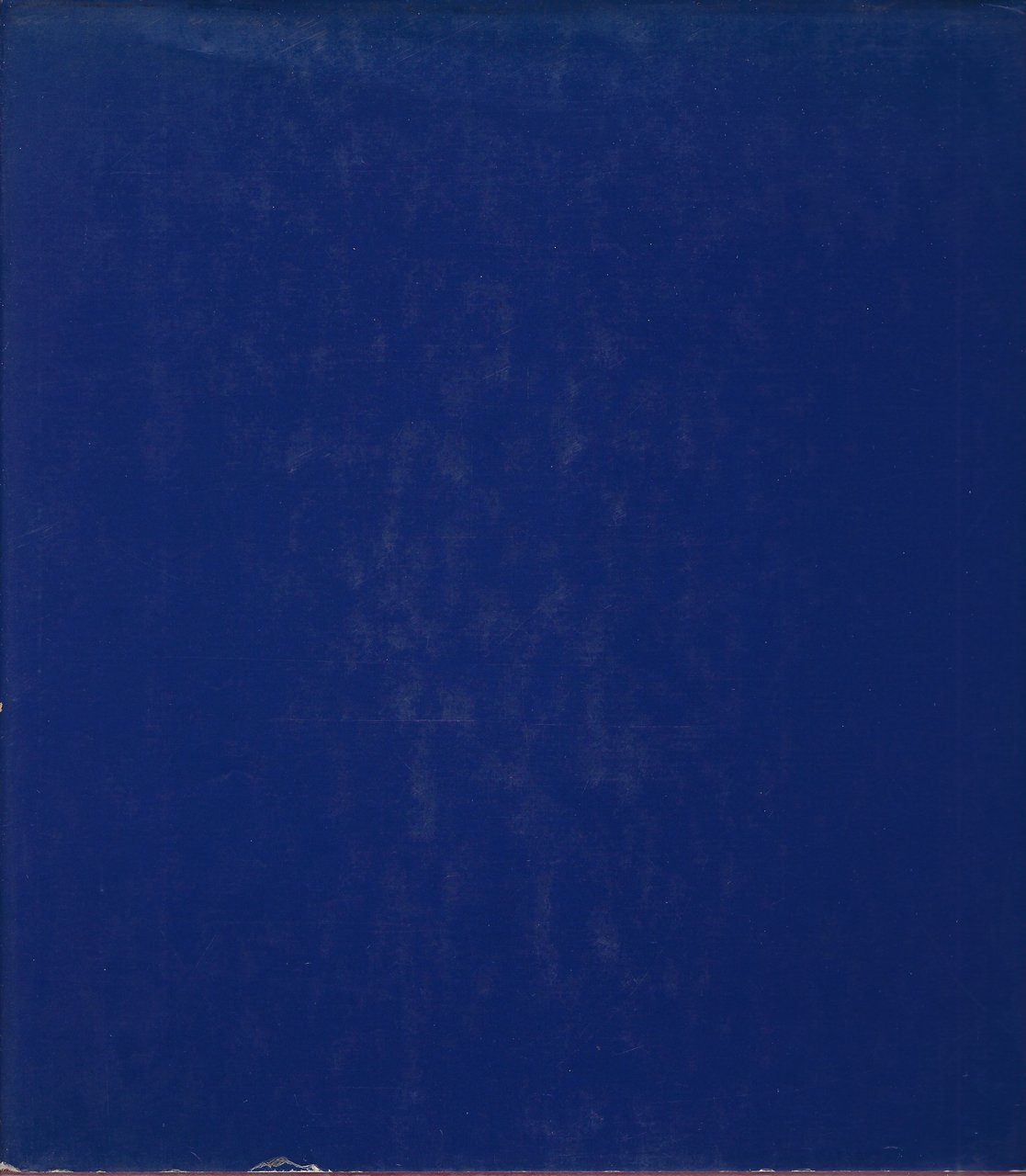 Sovraccoperta blu illustrata, che risulta usurata, con pieghe e tracce di polvere.
